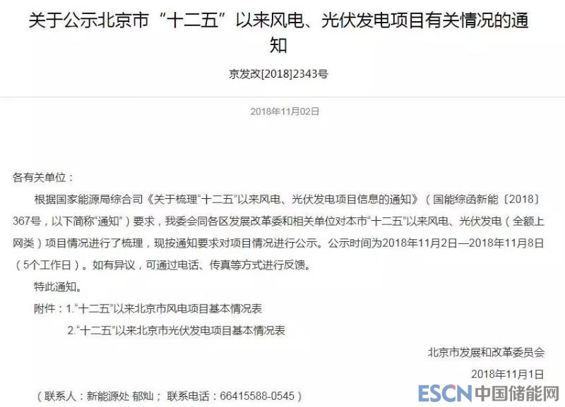 中國(guó)儲(chǔ)能網(wǎng)訊:11月2日,北京市發(fā)改委發(fā)布《關(guān)于公示北京市“十二五”以來(lái)風(fēng)電、光伏發(fā)電項(xiàng)目有關(guān)情況的通知》。