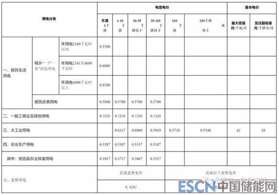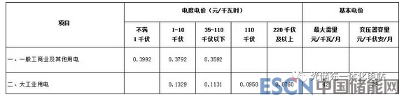 注:1. 表中電價含增值稅,含交叉補貼,含線損。
