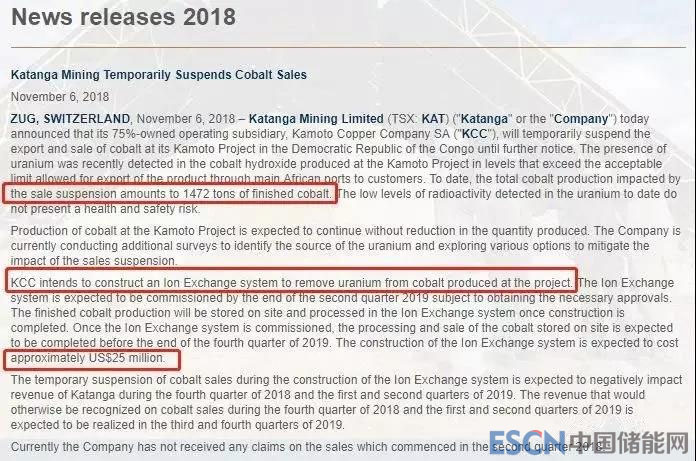 該礦石是KAT的Kamoto項(xiàng)目,經(jīng)檢測(cè)該項(xiàng)目生產(chǎn)的氫氧化鈷中,檢測(cè)到鈾的含量超過(guò)了可接受的限度,不能通過(guò)非洲主要港口向客戶出口產(chǎn)品。