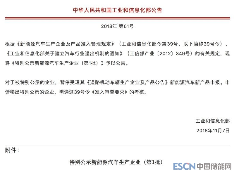 中國(guó)儲(chǔ)能網(wǎng)訊:工業(yè)和信息化部今日公告《特別公示新能源汽車生產(chǎn)企業(yè)(第1批)》,27家被特別公示企業(yè)將暫停受理其《道路機(jī)動(dòng)車輛生產(chǎn)企業(yè)及產(chǎn)品公告》新能源汽車新產(chǎn)品申報(bào)。申請(qǐng)移出特別公示的企業(yè),需通過《新能源汽車生產(chǎn)企業(yè)及產(chǎn)品準(zhǔn)入管理規(guī)定》 《準(zhǔn)入審查要求》的考核。