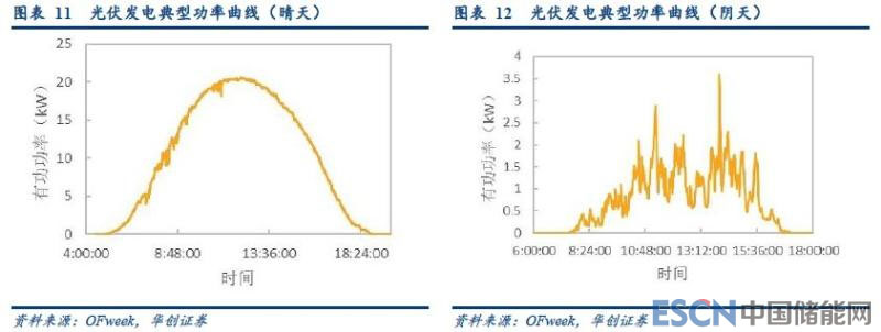 風(fēng)電“反負(fù)荷”特性強(qiáng),光伏波動性更大。從擬合負(fù)荷曲線的角度看,在內(nèi)陸日內(nèi)風(fēng)資源更多的集中在夜晚,因此風(fēng)電的“反負(fù)荷”特性更為明顯。而光伏的日發(fā)電曲線(夜晚為零,正午最高的山峰狀曲線),與負(fù)荷曲線的擬合度更高。但是,光伏的光照資源在多云、陰天的時刻,發(fā)電短時波動更大。