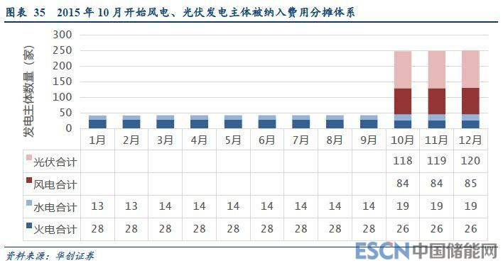 風(fēng)電、光伏發(fā)電主體納入體系,參與補(bǔ)償費(fèi)用分?jǐn)?。?015年10月開始,西北地區(qū)風(fēng)電、光伏發(fā)電主體均被納入到“兩個細(xì)則”的管理。根據(jù)規(guī)定,風(fēng)電、光伏的發(fā)電主體企業(yè),需要分?jǐn)傠娏o助服務(wù)體系下產(chǎn)生的補(bǔ)償費(fèi)用,同時自身的發(fā)電行為、技術(shù)指標(biāo)也要被考核。以新疆為例,2015年10月之前,只有14家水電廠、28家火電廠在“兩個細(xì)則”的體系范圍內(nèi),10月起新疆的118家光伏電廠、84家風(fēng)場也納入到了費(fèi)用補(bǔ)償體系內(nèi)。