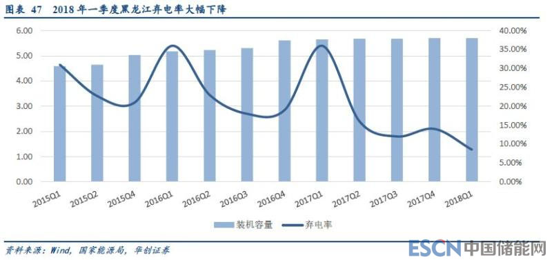 黑龍江輔助服務(wù)助力,棄電率大幅下降27個百分點(diǎn)。從能源局公布的數(shù)據(jù)看,2018年一季度黑龍江的棄風(fēng)率僅為8.5%,而去年同期為36%,同比大幅下降27.5個百分點(diǎn)。黑龍江電網(wǎng)引導(dǎo)火電企業(yè),調(diào)峰輔助服務(wù)使得風(fēng)電消納電量增加了10.6億千瓦時,占比今年風(fēng)電新增發(fā)電量的61%。同時,東北地區(qū)的風(fēng)電棄電率進(jìn)一步下降,遼寧、吉林、黑龍江棄電率分別下降到2.4%、8.1%、8.5%,而去年同期這一數(shù)字分別為15%、44%、36%。