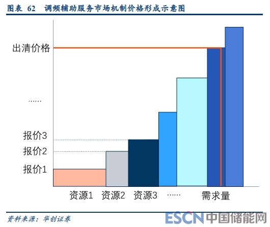 “規(guī)定價格、強(qiáng)制調(diào)用、事后補(bǔ)償”向“市場價格、自主申報、事前定價”轉(zhuǎn)變。電力輔助服務(wù)市場是電力市場中的重要組成部分,其中維護(hù)功率平衡的服務(wù)是現(xiàn)貨市場的重要品種。其中“調(diào)頻”市場組織方式是日前申報、日內(nèi)調(diào)用、集中競價、邊際出清、統(tǒng)一價格,調(diào)度中心將會根據(jù)價格由低到高對所有可用資源排序,并依次調(diào)用,并根據(jù)被調(diào)用的最后一檔資源申報價格作為市場出清價格統(tǒng)一結(jié)算。