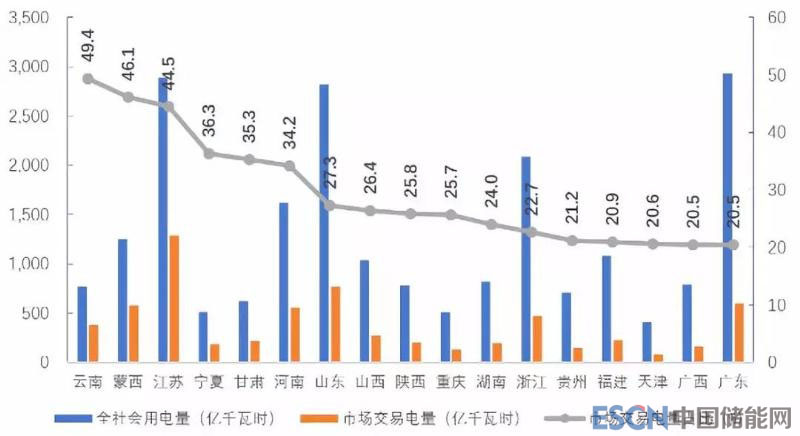 ▲2018年上半年分省區(qū)售電量市場化率圖