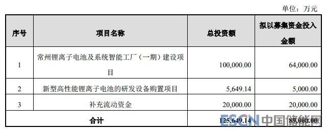 中國儲能網(wǎng)訊:11月19日早間, 鵬輝能源發(fā)布公告稱,公司擬公開發(fā)行可轉(zhuǎn)換公司債券募集資金總額不超過8.9億元(含發(fā)行費用),將用于常州鋰離子電池及系統(tǒng)智能工廠(一期)建設(shè)項目、新型高性能鋰離子電池的研發(fā)設(shè)備購置項目和補充流動資金(詳見下表)。