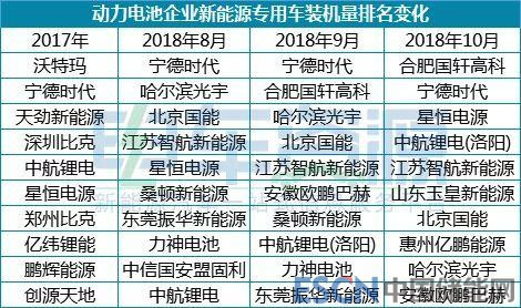 總的來說,除榜首由寧德時(shí)代變?yōu)閲幐呖仆?其余與9月相比整體變化不大。值得一提的是,星恒電源挺進(jìn)前三,山東玉皇新能源、惠州億鵬能源也挺進(jìn)前十。與2017年相比,如今只有寧德時(shí)代、星恒電源與中航鋰電依舊在榜首中,動(dòng)力電池行業(yè)仍在洗牌中,競爭激烈。