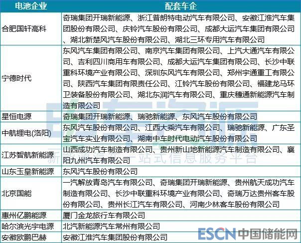 三、2018年10月新能源專用車動(dòng)力電池企業(yè)配套車企情況