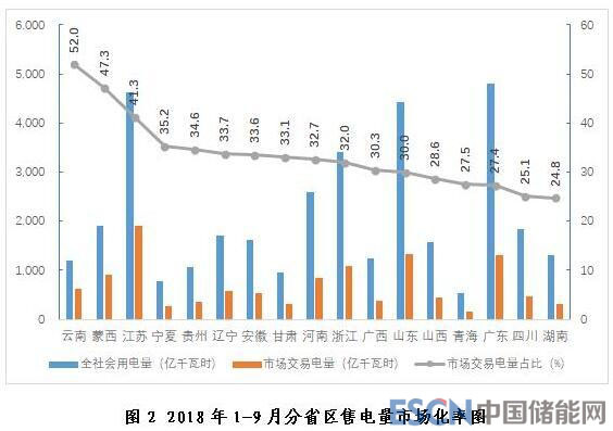 2018年3季度,全國市場交易電量(含發(fā)電權(quán)交易)合計為6937億千瓦時,占全社會用電量比重為37%,較2季度環(huán)比提高11.4個百分點。其中,省內(nèi)市場交易電量合計為5688億千瓦時,較2季度環(huán)比增長69.2%,省間(含跨區(qū))交易電量合計為1110億千瓦時,環(huán)比增長42%。