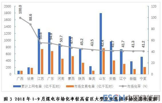 2018年1-9月,大型發(fā)電集團上網(wǎng)電量合計27533億千瓦時,市場交易電量合計9423億千瓦時(不含發(fā)電權(quán)交易電量)。