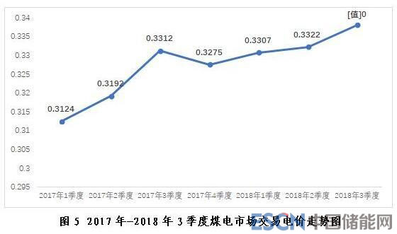2018年以來,隨著煤炭市場價格波動拉升以及市場交易的理性回歸,煤電市場交易電價呈緩步回升趨勢。自2017年4季度以來,煤電市場交易平均電價已連續(xù)四個季度保持增長。2018年3季度,大型發(fā)電集團煤電市場交易平均電價為0.3380元/千瓦時,較去年同期提高0.0068元/千瓦時。