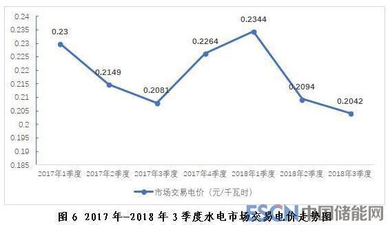2018年1-9月,大型發(fā)電集團水電機組上網(wǎng)電量4922億千瓦時,占其總上網(wǎng)電量的17.9%;水電市場交易電量1364億千瓦時,市場化率達到27.7%,市場交易平均電價為0.2033元/千瓦時。