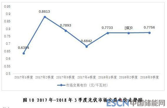 2018年1-9月,大型發(fā)電集團中交易電量最多的三個省份是青海、新疆和甘肅,分別為31.5億千瓦時、13.9億千瓦時和5.9億千瓦時,平均交易電價(含跨省跨區(qū)外送交易)分別為0.8008元/千瓦時、0.7106元/千瓦時和0.7447元/千瓦時。光伏發(fā)電市場化率居前幾位的省份依序為:云南(86.8%)、青海(63.1%)、新疆(52.9%)、寧夏(47.2%)。