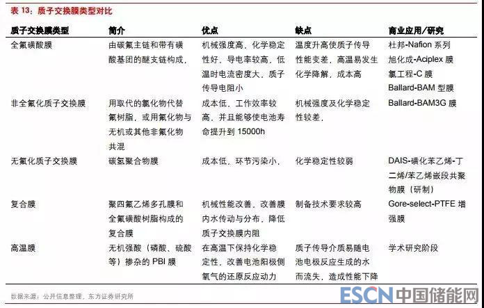 質(zhì)子交換膜類型主要包括全氟磺酸膜、非全氟化質(zhì)子交換膜、無氟化質(zhì)子交換膜、無氟化質(zhì)子交換膜、復(fù)合膜以及高溫膜。