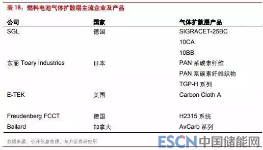擴(kuò)散層現(xiàn)階段主要供應(yīng)商是日本的東麗、德國 SGL 等公司,若國產(chǎn)化后,可降低開發(fā)生產(chǎn)成本,可降低燃料電池制造成本。