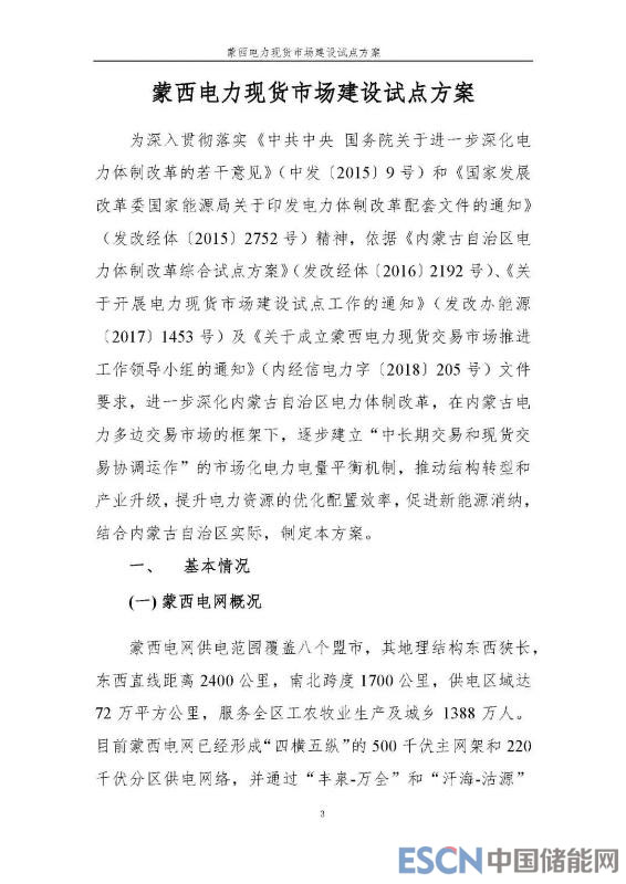 2018年10月,印發(fā)蒙西電力現(xiàn)貨市場試點方案;