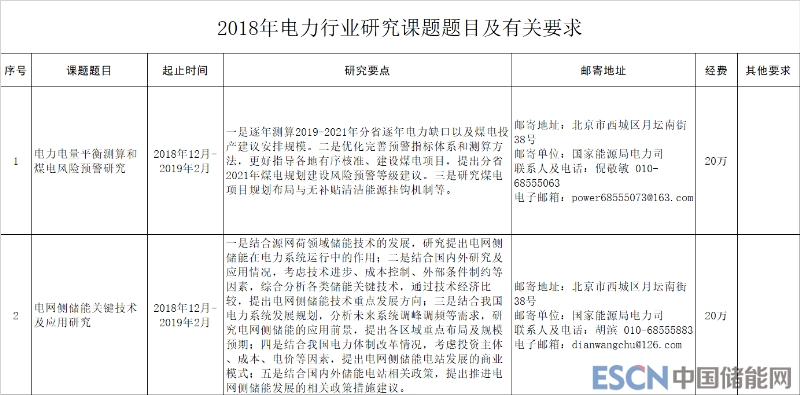 中國(guó)儲(chǔ)能網(wǎng)訊:近日,國(guó)家能源局電力司2018年度研究課題招標(biāo)公告發(fā)布。其中涉及電網(wǎng)側(cè)儲(chǔ)能關(guān)鍵技術(shù)及應(yīng)用研究。