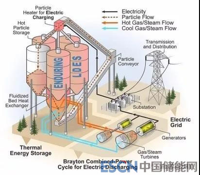 NREL首席研究員馬志文(音譯)解釋說,當(dāng)電力最便宜的時候,電加熱器“通過將穩(wěn)定、廉價的固體顆粒加熱到1100攝氏度以上,為儲能模塊'充電'”。當(dāng)需要釋放這種能量時,熱粒子將通過熱交換器加熱工作流體,驅(qū)動附著在發(fā)電機(jī)上的高效率閉環(huán)布雷頓聯(lián)合循環(huán)系統(tǒng)。