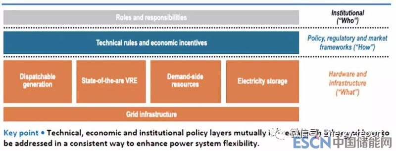 電力系統(tǒng)的靈活性取決于可用的硬件和基礎(chǔ)設(shè)施(“什么”)、政策、監(jiān)管和市場框架(“如何”)以及提供靈活性的實體(“誰”)的體制角色和責任。這三個方面必須協(xié)同工作才能提高系統(tǒng)的靈活性(圖ES.1)。