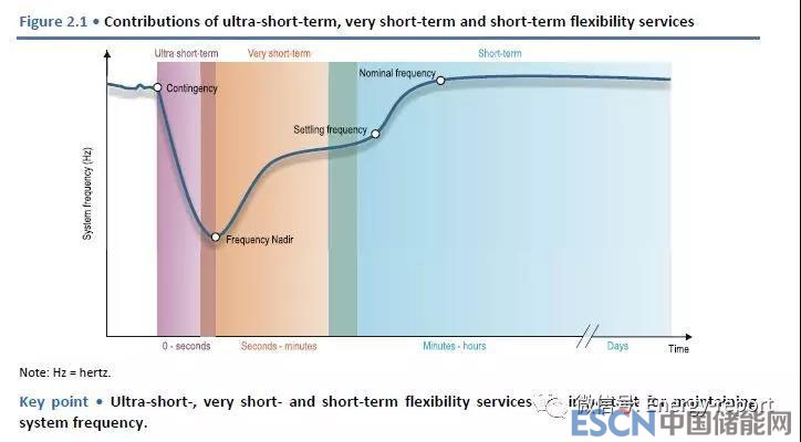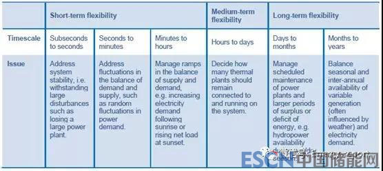 我們把關(guān)注點放在時間尺度上(從瞬間到幾年)持續(xù)平衡供需,在這些時間尺度上考慮靈活性是有用的。為了幫助理解不同的靈活性需求以及滿足這些需求的不同機制,本報告根據(jù)時間尺度對靈活性需求進行分組,從短期(亞秒到小時)到中期(小時到天)和長期(天到年) (Table ES.1).