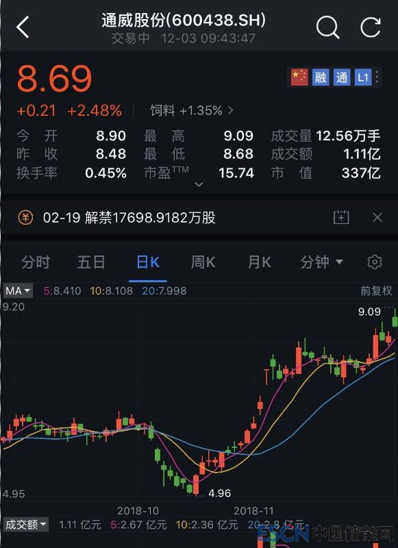 受此消息影響,12月3日晨間,國內(nèi)多家新能源企業(yè)在內(nèi)地、香港資本市場高開高走。截至能源一號發(fā)稿時,尤其引人矚目的是個股為陽光電源、通威股份、保利協(xié)鑫能源、東方日升、中來股份、隆基股份等,股價表現(xiàn)搶眼。此外,協(xié)鑫集成、蘇美達(dá)、科士達(dá)、京運通、向日葵、亞瑪頓、航天機電等同樣全線高開。