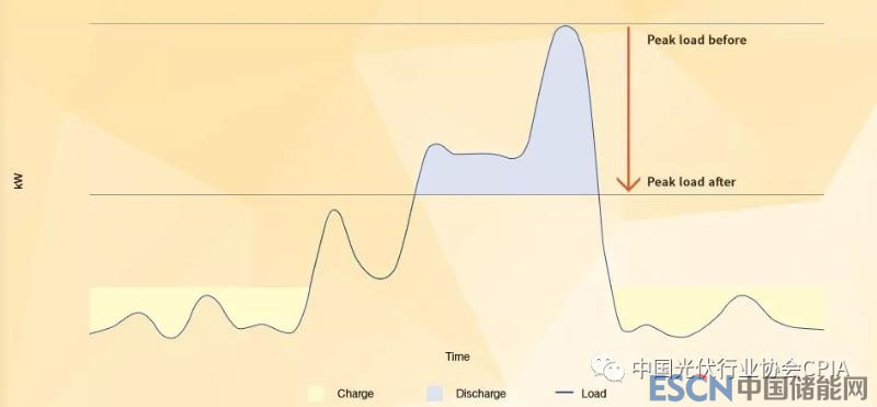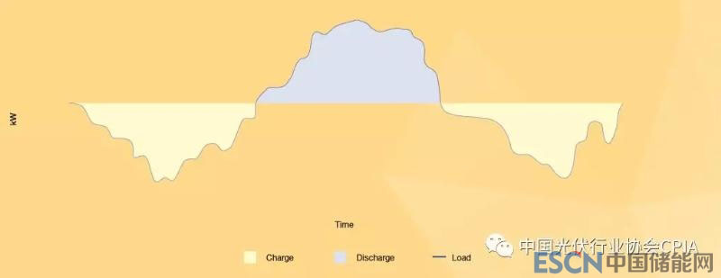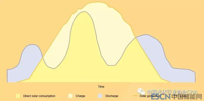 太陽能供給曲線(黃色)是變量,與傳統(tǒng)電力需求曲線(藍(lán)色)僅部分保持一致,將光伏+儲能相結(jié)合可以儲存多余電量(白色區(qū)域),當(dāng)用戶需求過高時(藍(lán)色區(qū)域),可以將儲存的太陽能電量運送回輸電網(wǎng),最大限度的利用儲能的技術(shù)潛力。