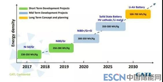 目前寧德時代的三元電池單體能量密度達240Wh/kg,寧德時代表示,2019年將推出單體能量密度達到280kWh/kg以上的NCM811電池,并計劃在2020年之前將電芯能量密度提升到300Wh/kg。