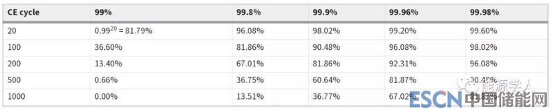 圖3. 庫侖效率(CE)對(duì)理論全電池容量保持的影響
