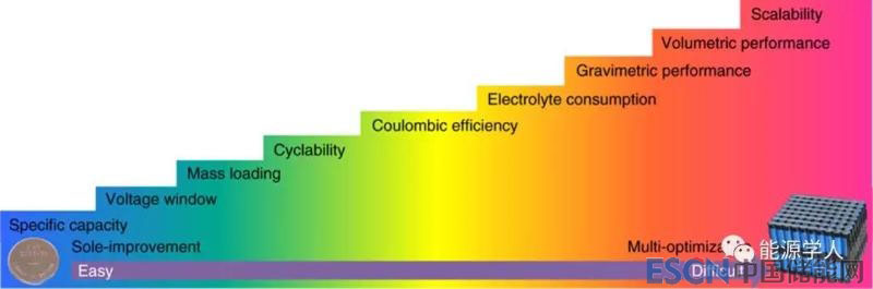 圖2.從紐扣電池到電池組的LIB中電極的各種性能指標(biāo)