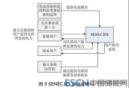 目前,與分布式光伏組合形成的分布式光儲(chǔ)系統(tǒng)在國(guó)外已有較多的商業(yè)應(yīng)用,在不同的國(guó)家,分布式光儲(chǔ)發(fā)電的應(yīng)用重點(diǎn)各不相同,美國(guó)加州在工商業(yè)領(lǐng)域的分布式項(xiàng)目居多,澳大利亞和德國(guó)市場(chǎng)的重點(diǎn)在戶(hù)用儲(chǔ)能領(lǐng)域。以德國(guó) SENEC.IES 公司為例,該公司將用戶(hù)側(cè)儲(chǔ)能聚集起來(lái)開(kāi)展“免費(fèi)午餐”模式,享有對(duì)電池的主要控制權(quán),當(dāng)電網(wǎng)“零電價(jià)”時(shí)控制電池從電網(wǎng)充電。用戶(hù)主要通過(guò)最大化地自我消納屋頂光伏所發(fā)的電力、使用 SENEC.IES 提供給用戶(hù)的“免費(fèi)儲(chǔ)存的電力”,實(shí)現(xiàn)更低的電費(fèi)賬單,進(jìn)而獲益。SENEC.IES 的商業(yè)模式見(jiàn)圖5。