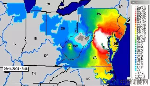節(jié)點邊際電價在整個交易區(qū)域的不同部分可能變化很大,并且可能非常不穩(wěn)定,這具體要取決于整個系統(tǒng)的邊界條件。下圖顯示了PJM系統(tǒng)中節(jié)點電價的熱圖,圖中白色的區(qū)域為節(jié)點電價最高的區(qū)域,之后是紅色、黃色、綠色的區(qū)域。而顏色越藍(lán),則表示節(jié)點電價越低。圖中白色區(qū)域為華盛頓特區(qū)。華盛頓特區(qū)電價最高的原因是因為PJM電網(wǎng)中存在傳輸能力的不足,限制了像俄亥俄州這樣的地區(qū),提供低成本電力用來滿足華盛頓特區(qū)等高電力需求。因此華盛頓特區(qū)只能使用更靠近該地區(qū)的高成本發(fā)電機組。