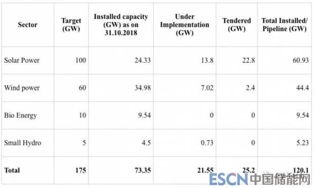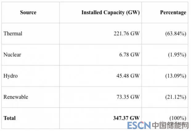 截至今年10月31日,新能源和可再生能源部公布的印度電力裝機量數(shù)據(jù)如下: