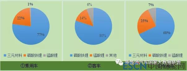 上述數(shù)據(jù)可以看出,不同類別新能源車型動力電池搭載類別層次化趨勢明顯,乘用車和專用車以三元材料為主,客車則側(cè)重于磷酸鐵鋰??紤]到乘用車為國內(nèi)主要的推廣車型,目前新能源汽車國家監(jiān)測與管理平臺70%以上的接入車型為乘用車,加之專用車型15%左右的接入量,可以說三元材料電池在目前新能源汽車市場中優(yōu)勢顯著。