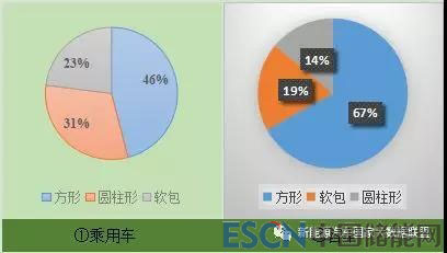 目前,新能源汽車電池形狀類別主要以方形、圓柱形和軟包為主,《研究報告》顯示,純電動車乘用車三元材料動力電池中,方形、圓柱形和軟包形3中形狀的動力電池呈現(xiàn)“三足鼎立”的態(tài)勢:方形占比46%,圓柱形占比31%,軟包23%;而搭載磷酸鐵鋰和錳酸鋰動力電池的新能源乘用車中,方形動力電池數(shù)量占比均高達90%以上(磷酸鐵鋰方形占比93%,錳酸鋰方形占比95%),主要以寧德時代、比亞迪、合肥國軒為主。新能源客車中,搭載方形動力電池占比為67%,軟包形為19%,圓柱形為14%(如圖3所示)。新能源專用車中,三元材料中59%為圓柱形,且以18650電池為主;磷酸鐵鋰電池64%為圓柱形;錳酸鋰電池中方形動力電池占比則高達87%。可以看出,目前方形動力電池已成為新能源汽車推廣市場動力搭載的主流,尤其是伴隨著寧德時代、比亞迪等核心龍頭產(chǎn)業(yè)的不斷擴產(chǎn),動力電池國家統(tǒng)一標準呼聲的逐步高漲,方形動力電池可以說是大勢所趨。