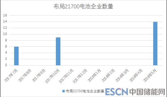 從業(yè)內(nèi)媒體報道的數(shù)據(jù)來看,國內(nèi)布局21700電池的企業(yè)數(shù)量由2017年7月份的6家上升到今年5月份的14家,國內(nèi)21700的卡位戰(zhàn)號角似乎已經(jīng)吹響。