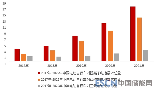 據(jù)SMM調(diào)研分析,2017年,中國電動自行車對鋰離子電池的需求總量為4GWh,其中,對三元電池與錳酸鋰電池的需求占比分別為40%、60%。SMM預計,由于目前電動自行車市場保有量巨大,在新國標正式實施后,電動自行車對鋰離子電池的需求會逐年增長,預計在2021年達到20GWh。同時,錳酸鋰電池在電動自行車中的應用比例會逐年增加,到2021年,錳酸鋰電池的應用比例達到80%。