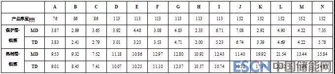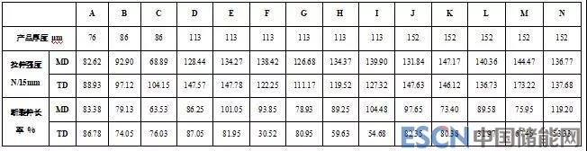 從表1可以看出,拉伸強(qiáng)度、斷裂伸長(zhǎng)率作為薄膜材料力學(xué)性能的重要指標(biāo),其結(jié)果的差異對(duì)鋰電池制造過(guò)程中的沖壓、折邊等工藝的影響較大,因此將其納入標(biāo)準(zhǔn)具有充分必要性。