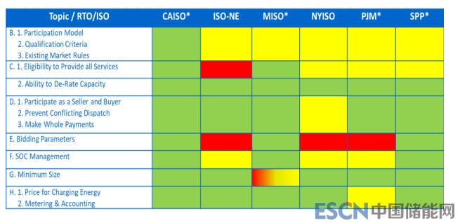 與此同時(shí),開發(fā)商和其他利益相關(guān)者有數(shù)百頁的監(jiān)管文件需要仔細(xì)研究。在對CES公司為美國儲(chǔ)能協(xié)會(huì)匯總的合規(guī)性文件的初步評估中,創(chuàng)建了一個(gè)記分卡,顯示每個(gè)獨(dú)立系統(tǒng)運(yùn)營商(ISO)或區(qū)域輸電組織(RTO)是否符合美國聯(lián)邦能源監(jiān)管委員會(huì)(FERC)訂單的情況。