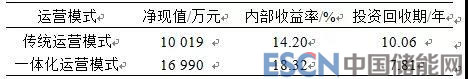 表1傳統(tǒng)運營模式和一體化運營模式的成本收益