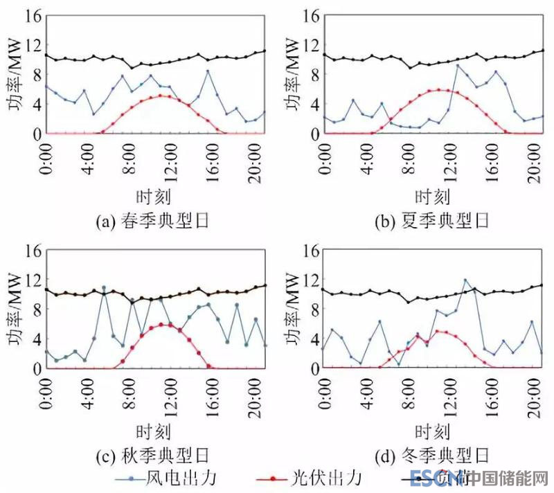 圖8四季典型日微網(wǎng)風光出力和負荷曲線