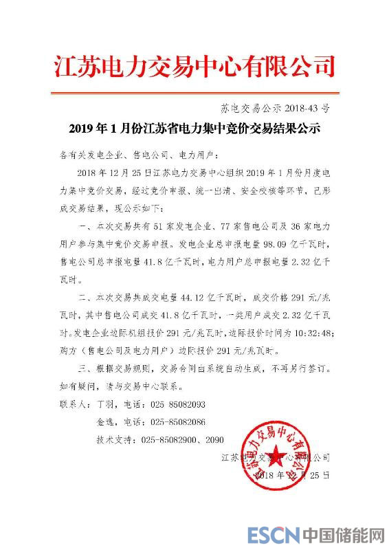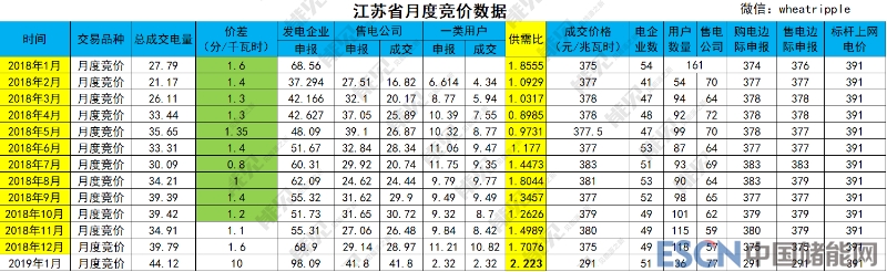 中國儲能網(wǎng)訊:據(jù)悉,江蘇電力交易中心12月25日公布2019年1月份月度集中競價結(jié)果,相較于2018年1.5分/千瓦時的月度價差和2019年2.18分/千瓦時的年度雙邊交易價差,本次成交價格較標(biāo)桿電價下降破紀(jì)錄的0.1元/千瓦時。
