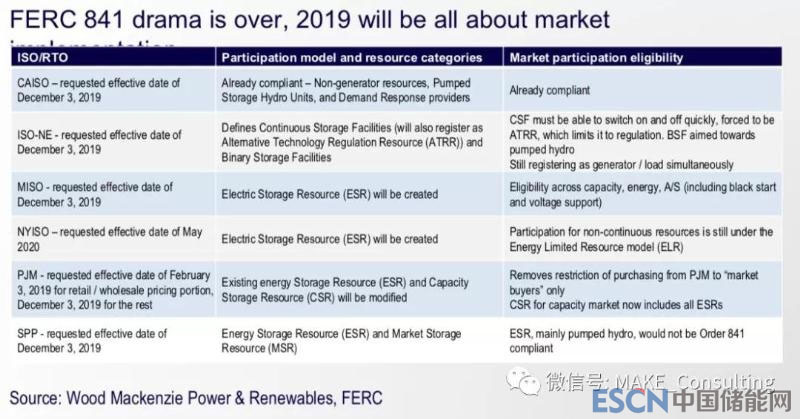 本月內(nèi)各大電網(wǎng)運(yùn)營商將陸續(xù)向FERC最終提交841號(hào)令合規(guī)計(jì)劃,目前我們也可從整體宏觀角度窺探每家的實(shí)施和發(fā)展計(jì)劃。雖然美國儲(chǔ)能聯(lián)盟(ESA)確實(shí)對(duì)這些最終計(jì)劃表示不滿,表明未來對(duì)此還有更多的爭(zhēng)論,但2018年開放的841號(hào)令強(qiáng)制執(zhí)行帶來的市場(chǎng)變化卻有望為批發(fā)電力與輔助服務(wù)市場(chǎng)提供大量新的發(fā)展機(jī)會(huì)。