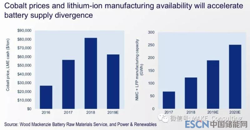 Manghani的第四個(gè)預(yù)測(cè)集中在2018年行業(yè)發(fā)展阻力之一——供應(yīng)鏈短缺。該狀況阻礙了工商業(yè)用戶側(cè)儲(chǔ)能項(xiàng)目的發(fā)展,而短暫性產(chǎn)能瓶頸和鈷價(jià)格全球性上漲是這一現(xiàn)象背后的兩大原因。鈷是許多高能量密度鋰電池化學(xué)原料之一,如鎳鈷錳三元鋰電池(NMC)和鎳鈷鋁三元鋰電池(NCA)。