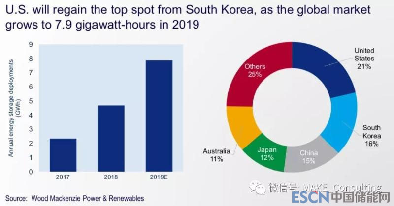 預(yù)測(cè)五:美國在2018年失去全球最大儲(chǔ)能市場(chǎng)的地位,但將于2019年重返榜首