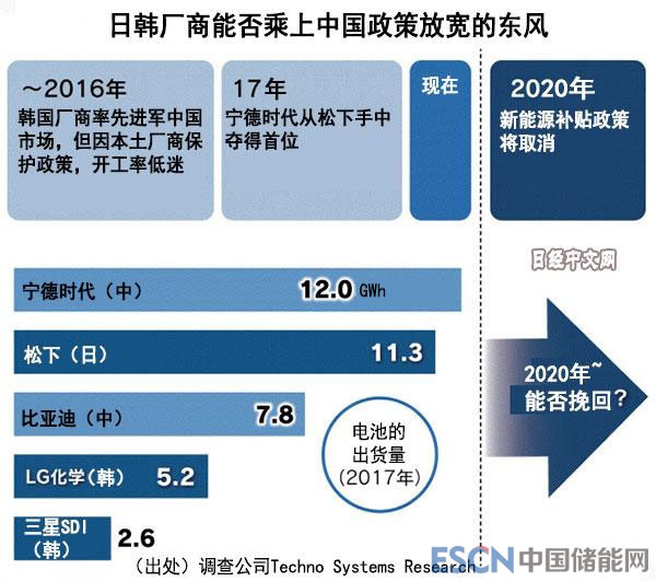 中國(guó)儲(chǔ)能網(wǎng)訊:據(jù)根據(jù)《日經(jīng)中文網(wǎng)》25日?qǐng)?bào)道,伴隨著中國(guó)政府放寬純電動(dòng)汽車(chē)等新能源車(chē)的限制,出臺(tái)了吸引外資、促進(jìn)新能源車(chē)普及的政策,日韓廠商基于對(duì)未來(lái)訂單增量的預(yù)期,紛紛計(jì)劃擴(kuò)增中國(guó)車(chē)用電池產(chǎn)能,借此搶占市場(chǎng)。未來(lái),中日韓三國(guó)車(chē)載電池生產(chǎn)廠商在中國(guó)市場(chǎng)上的競(jìng)爭(zhēng)將日趨激烈。
