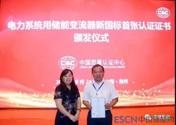 許繼集團為國內(nèi)首個取得CQC儲能變流器PCS認證證書的廠家
