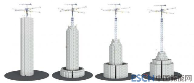 想象一個普通的彈簧,如果你用手指纏繞那個彈簧,你就會為其加入勢能。當(dāng)你釋放它時,就可以釋放出能量。將此原理應(yīng)用于可堆疊混凝土砌塊塔,六臂起重機(jī)的作用就如同那根手指。