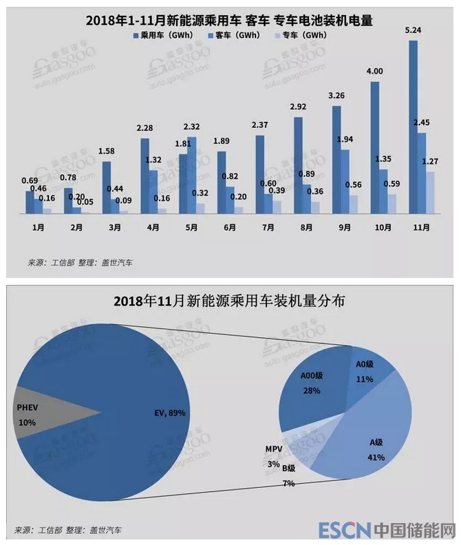 從細(xì)分市場來看,乘用車、客車、專用車及貨車11月份動力電池裝機(jī)量分別為:5242.4 MWh、2449.2 MWh、1269.8 MWh,環(huán)比分別增長31.1%、82.0%、113.5%。新能源客車本月產(chǎn)量達(dá)到16,792輛,創(chuàng)2018年單月客車產(chǎn)量新高。2019年新能源補(bǔ)貼政策雖然尚未發(fā)布,但大幅下調(diào)幾乎已成定局,年末沖量的趨勢與去年同期相類似。