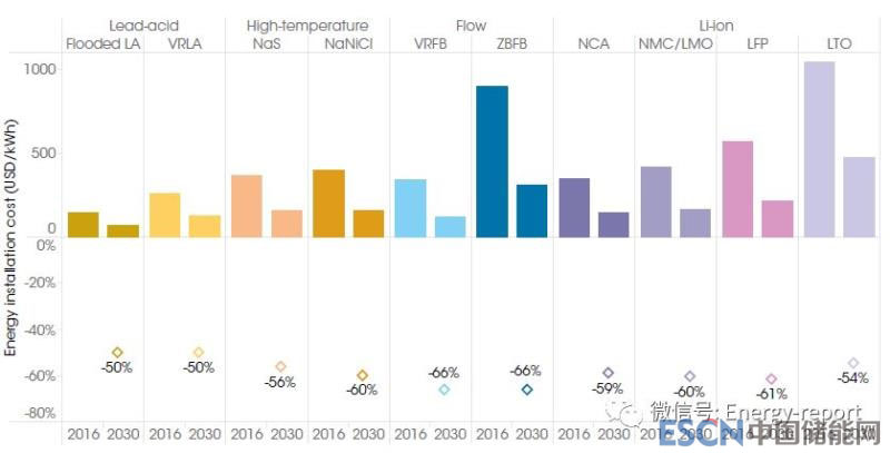 導讀: 新興儲能技術的成本降低具有巨大的潛力,到2030年,在固定應用中,鋰離子電池的總安裝成本可能會進一步下降54%或更多。