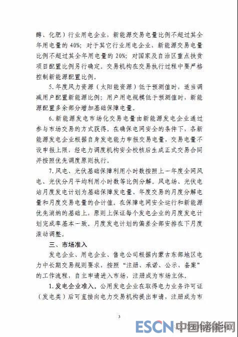 《意見》重點關(guān)注了新能源發(fā)電情況。指出,蒙東地區(qū)按照用戶類別確定新能源交易比例,用戶按照配置比例分別與火電機組和新能源機組交易;2019年按照新能源發(fā)電占區(qū)內(nèi)市場化交易電量30%左右參與市場化交易;新能源市場化電量交易價格區(qū)間暫定為蒙東地區(qū)火電標(biāo)桿上網(wǎng)電價的40%至55%之間。